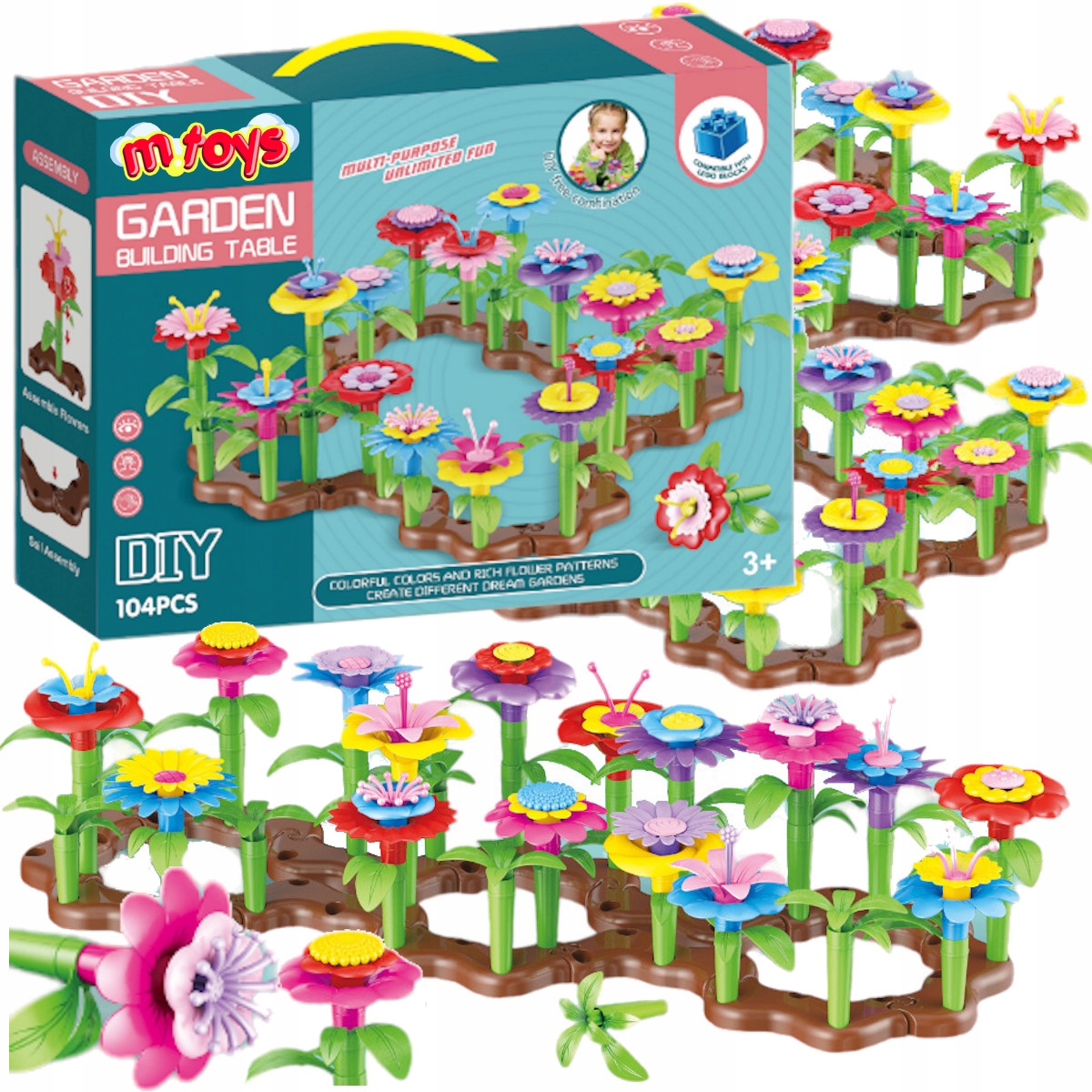 KWIATKI KLOCKI KREATYWNE OGRÓD KWIATOWY 104 ELEMENTY