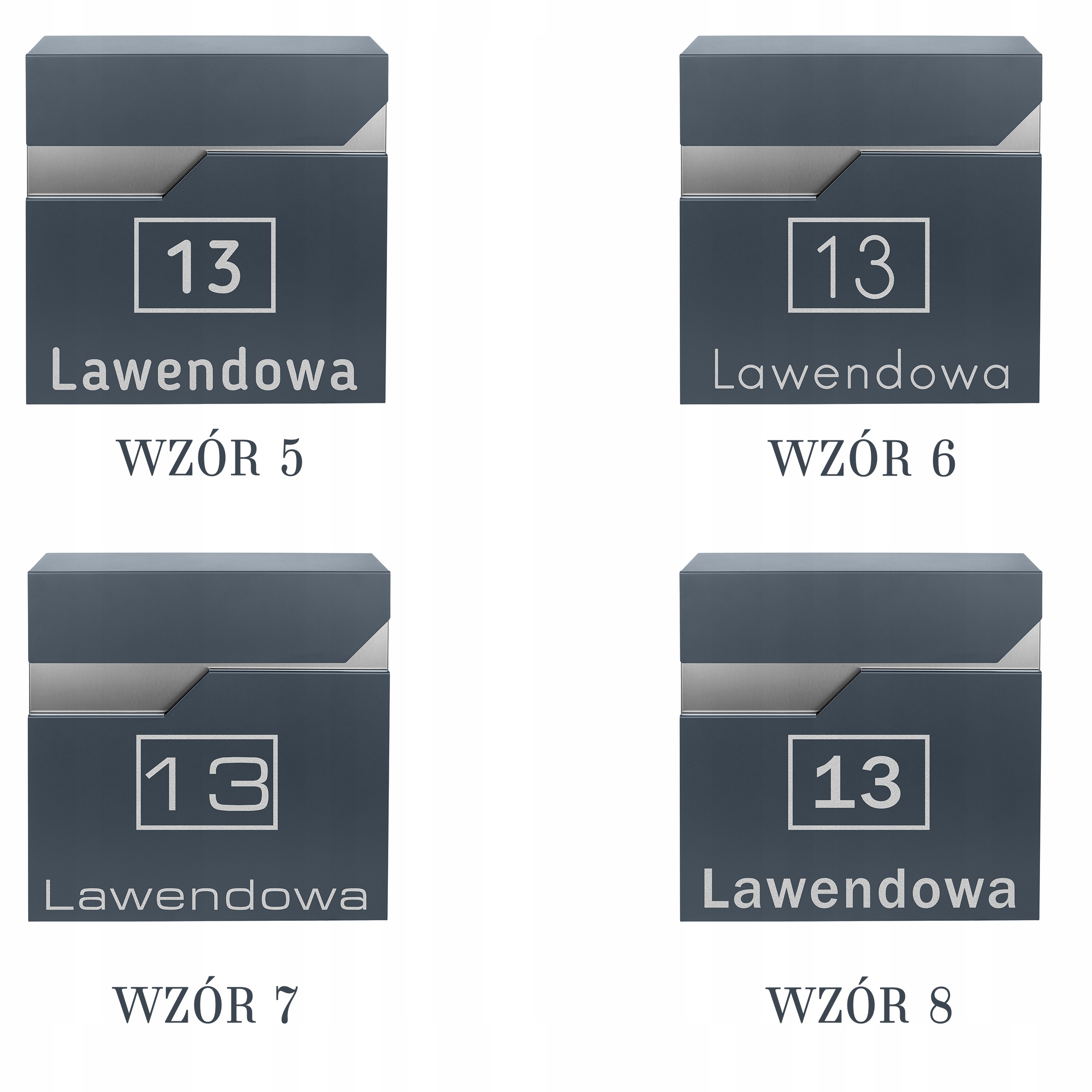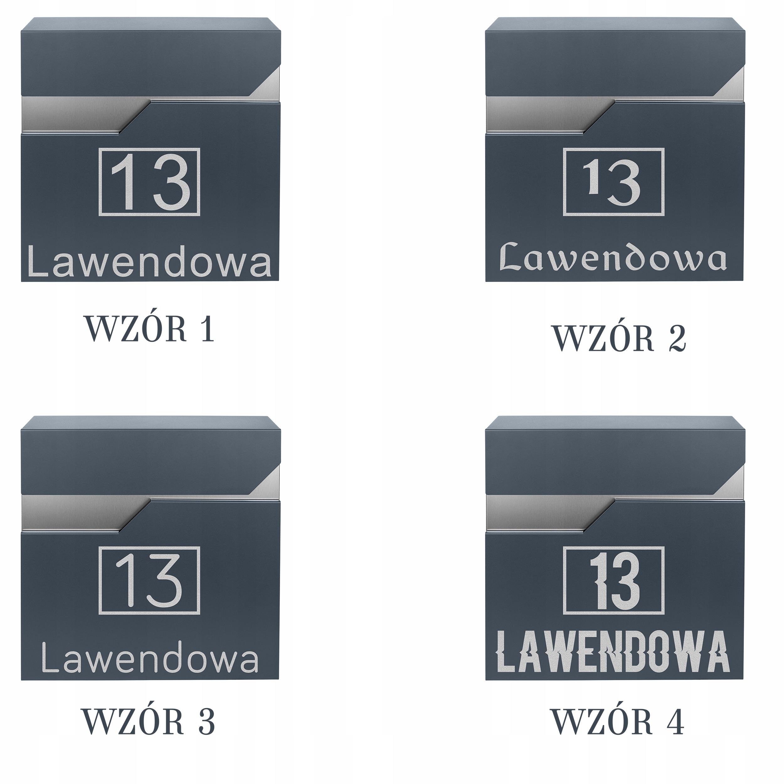 Dzięki personalizacji możesz dopasować wygląd skrzynki do charakteru swojego domu – wybierz wzór numeru, czcionkę oraz układ napisu.