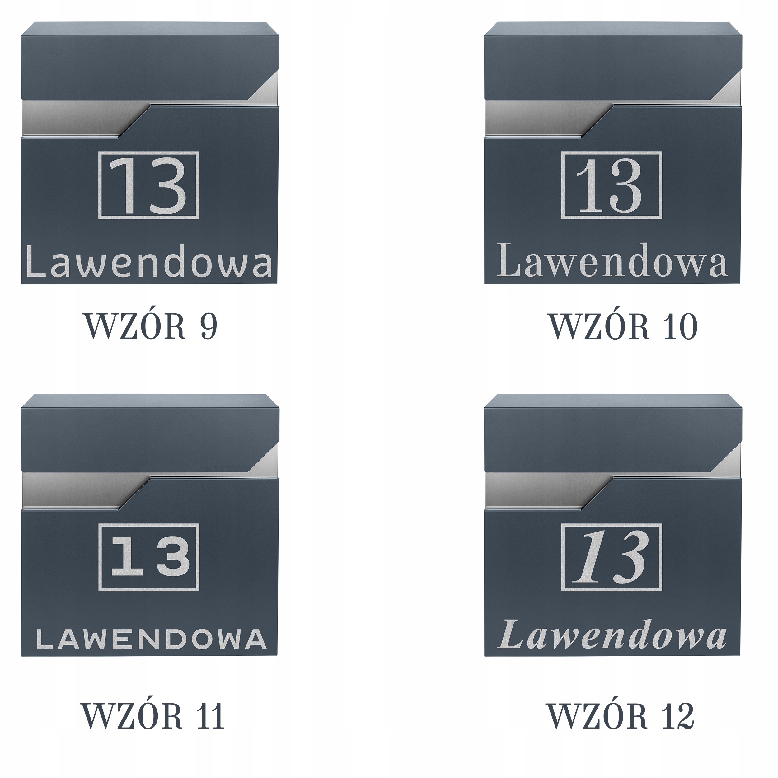 Dzięki personalizacji możesz dopasować wygląd skrzynki do charakteru swojego domu – wybierz wzór numeru, czcionkę oraz układ napisu.