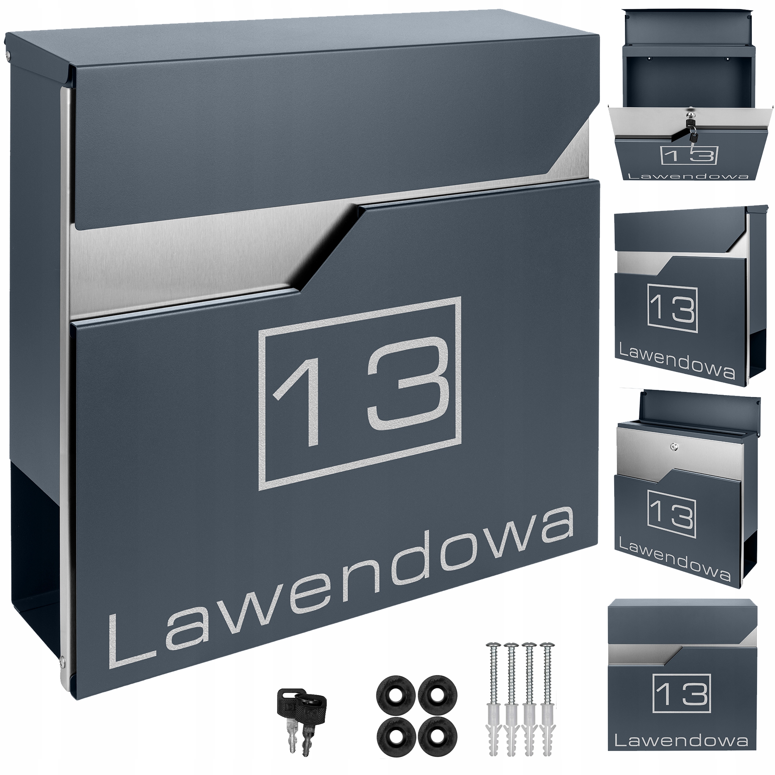 ⭐ SKRZYNKA NA LISTY Z NUMEREM DOMU I ULICĄ – ANTRACYT ⭐