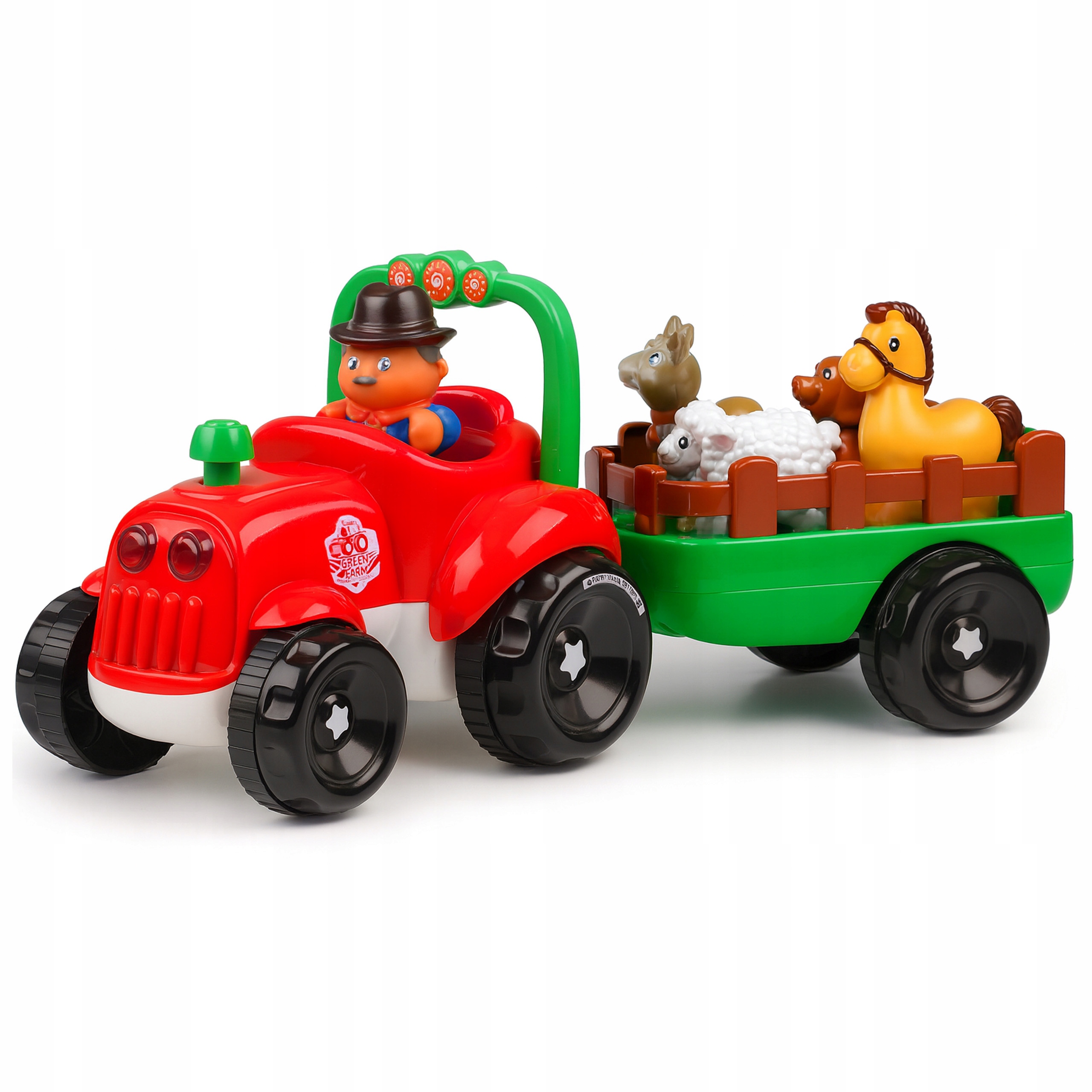 TRAKTOR TRAKTOREK FARMERA Z PRZYCZEPKĄ INTERAKTYWNY ŚWIECI GRA ZWIERZĄTKA