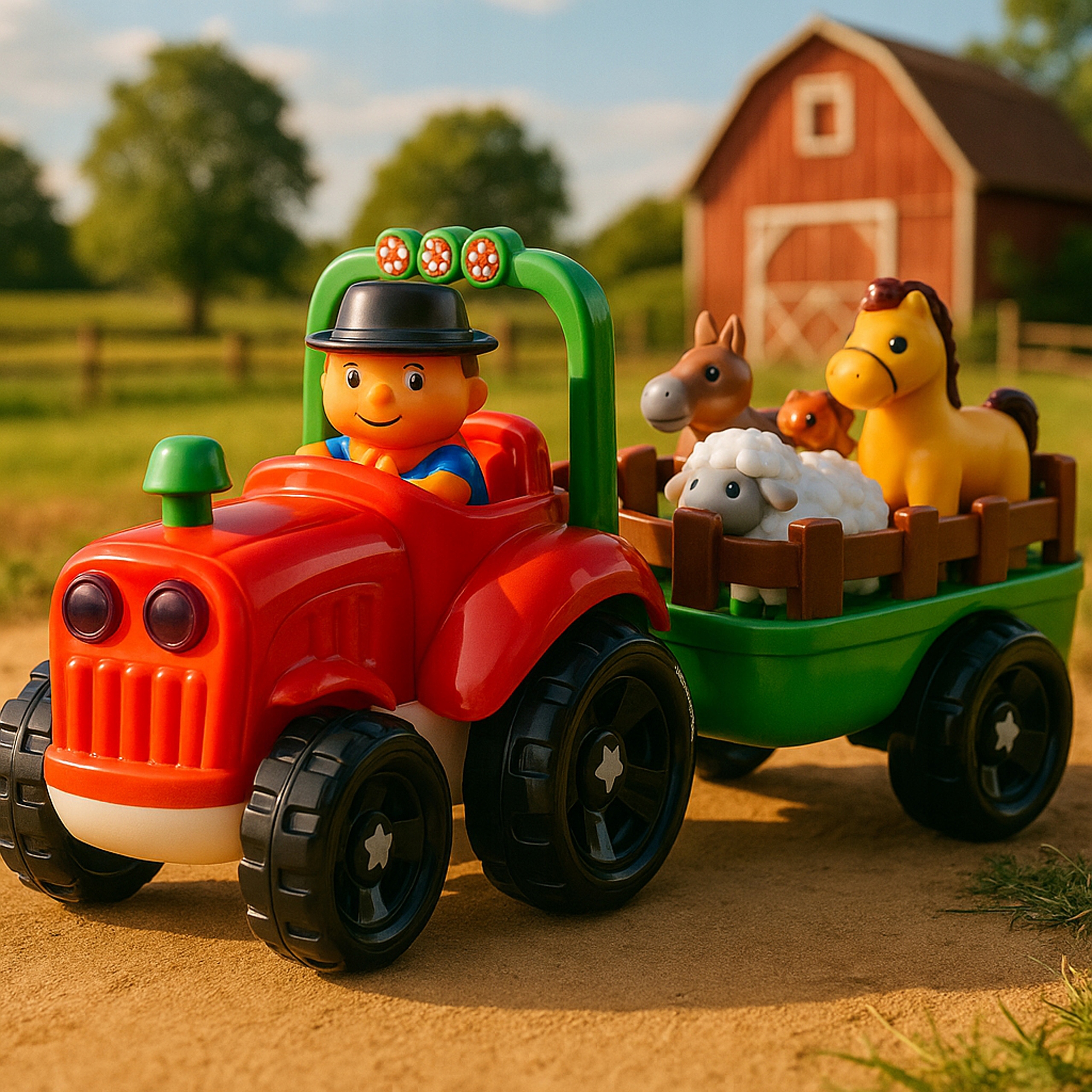 Traktor z przyczepą i figurkami farmera oraz zwierząt sprawdzi się zarówno w domu, jak i podczas zabawy na świeżym powietrzu. Może być elementem większej farmy z innymi zabawkami, ale doskonale sprawdzi się także jako samodzielny zestaw.