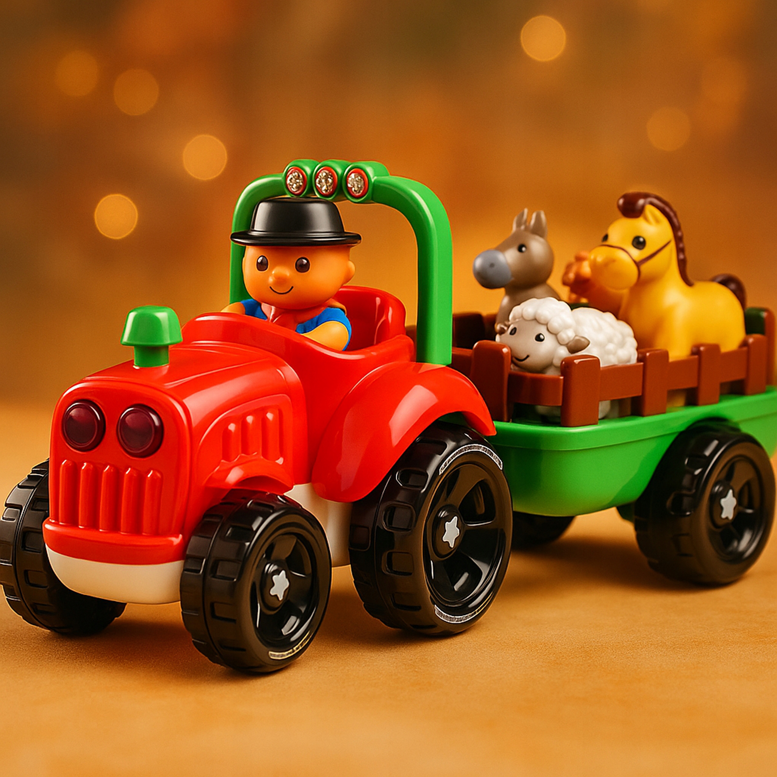 Ogromnym atutem jest interaktywna przyczepa, w której każde zwierzątko ma swoje oznaczone miejsce. Dopasowanie figurki aktywuje odpowiedni odgłos – to świetna forma nauki poprzez zabawę. Dziecko rozwija umiejętności rozpoznawania kształtów i dźwięków, a jednocześnie uczy się, jakie odgłosy wydają różne zwierzęta gospodarskie.
